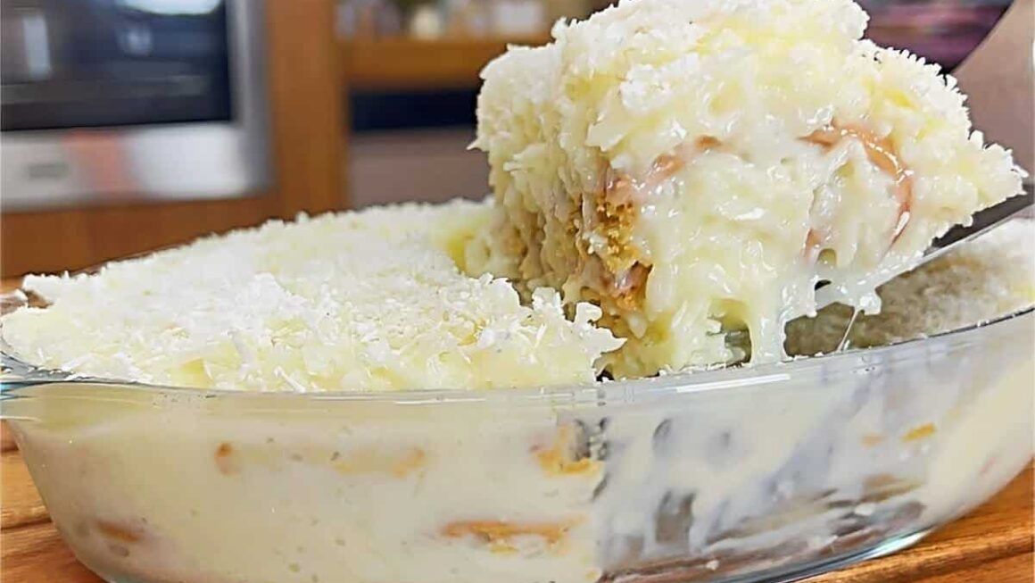 Para fazer essa sobremesa vamos precisar de coco em flocos, leite de coco e leite condensado. Iremos misturar num recipientes os ingredientes do creme da sobremesa de coco até homogeneizar. Para a montagem iremos intercalar numa travessa camadas de creme de coco e biscoito maisena umedecido no leite, mas a última camada deverá ser de creme. Vamos finalizar a sobremesa de coco polvilhando coco ralado a gosto, e levar para gelar por 2 horas. Retirar da geladeira e se deliciar com cada porção gostosa dessa incrível sobremesa!