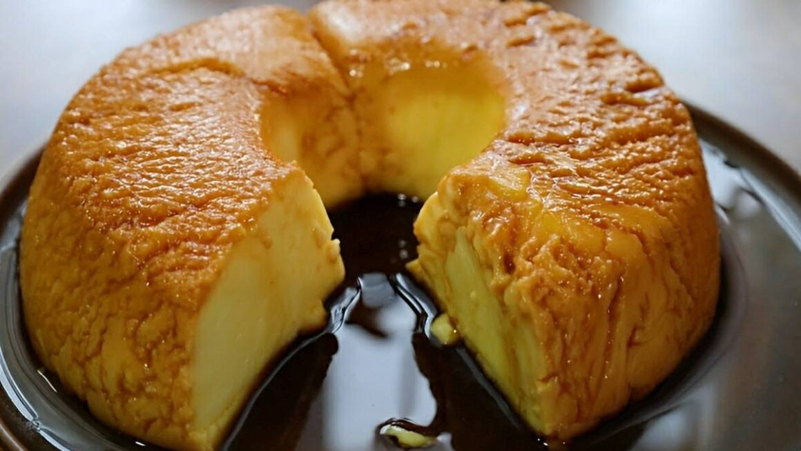 - Retire do fogo, despeje na forma caramelizada e leve para gelar até o dia seguinte, ou no mínimo por 4 horas. Retire da geladeira e desenforme numa travessa para servir.