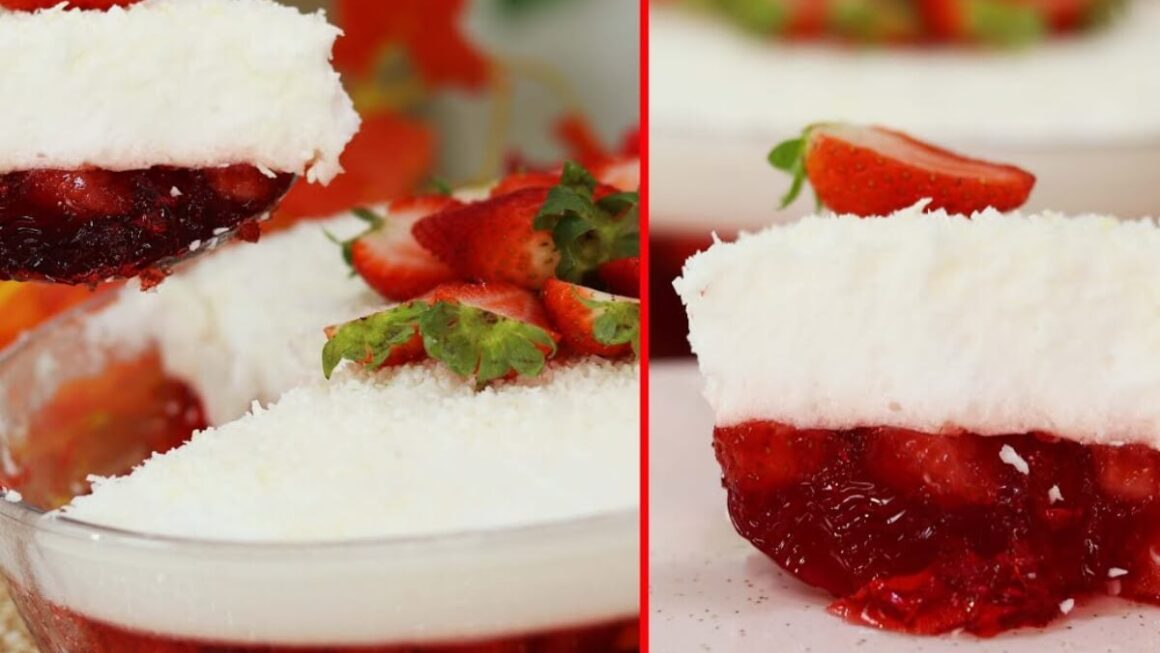 - Derrame por cima da gelatina e salpique coco ralado.