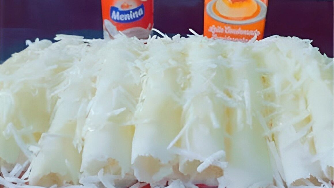 - Coloque uma tapioca(biju) numa travessa, regue com a calda, disponha o coco ralado a gosto e regue com leite condensado.