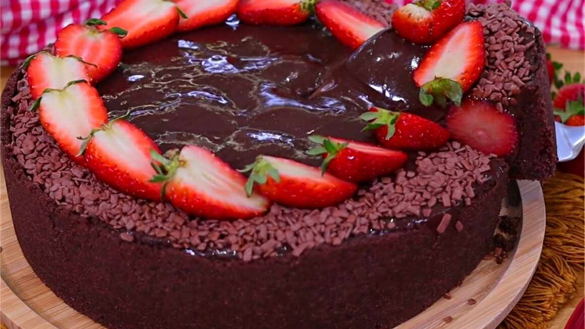 - Sirva em seguida essa maravilhosa torta de chocolate com morango!