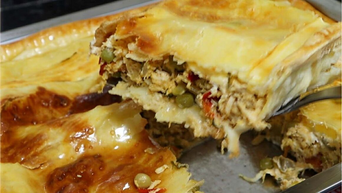 Torta de frango com massa de pastel muito rápida e fácil de fazer