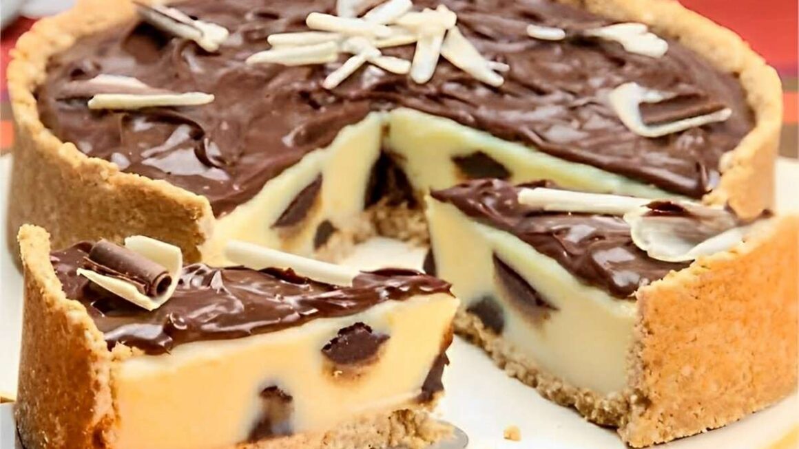 - Decore a torta trufada com raspas de chocolate branco e preto e leve para a geladeira por pelo menos 2 minutos.