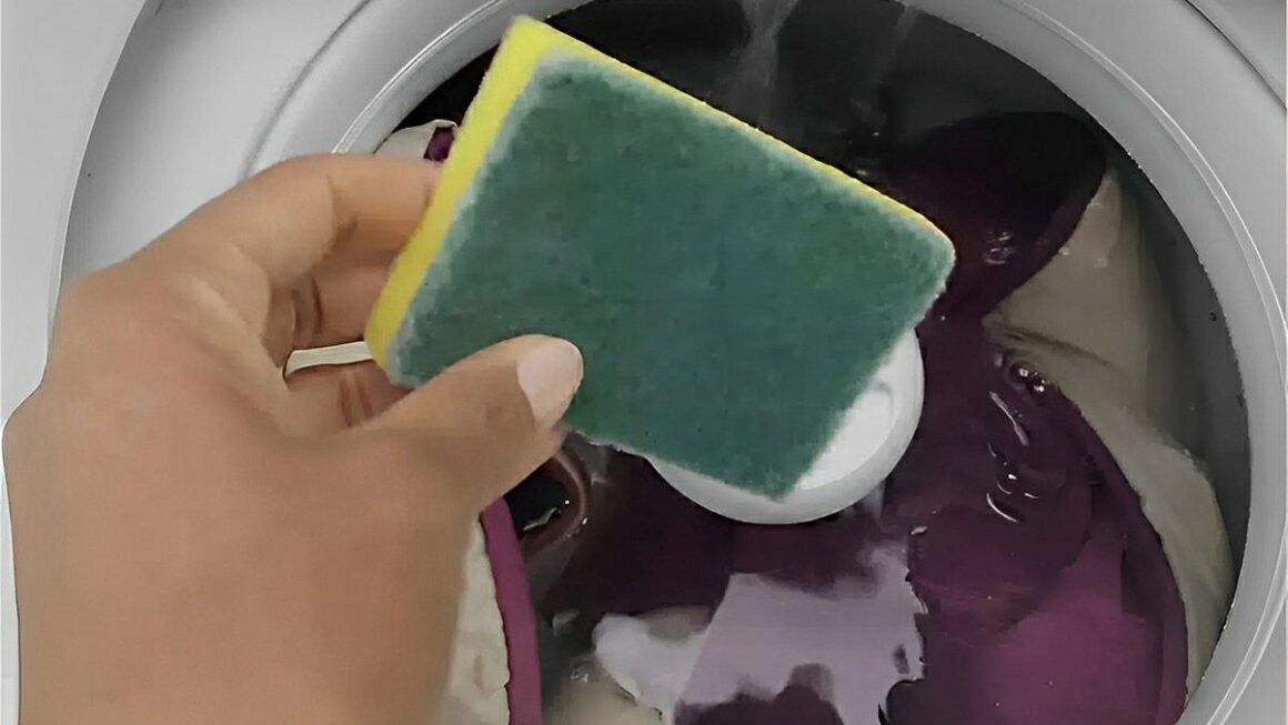 - Posicione a esponja de cozinha nova em meio às roupas, dentro da máquina.