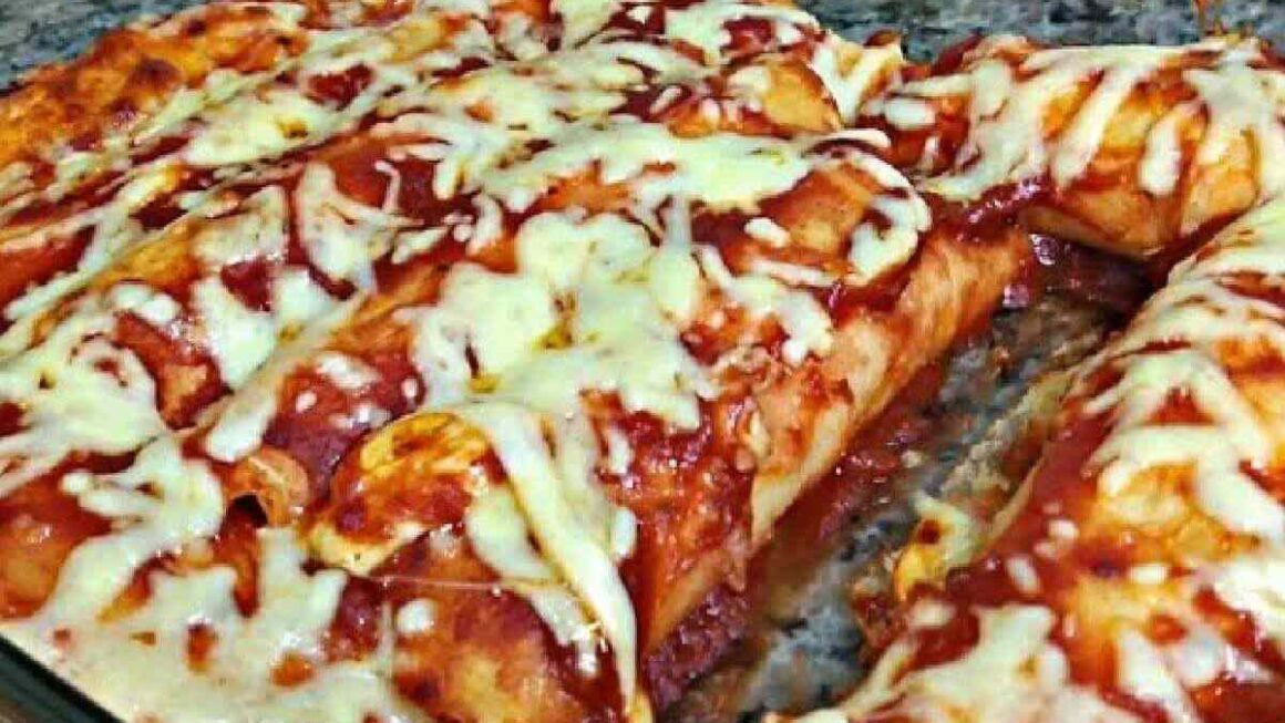 - Forre uma travessa refratária de vidro, com molho pronto de tomate, acomode as panquecas e espalhe mais molho sobre elas.
