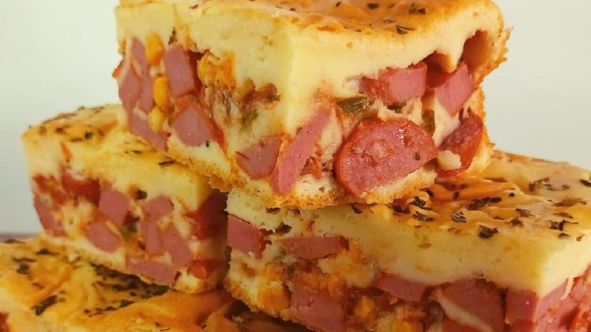 - Agora é só servir essa delícia cremosa e bem temperadinha em forma de torta de salsicha!