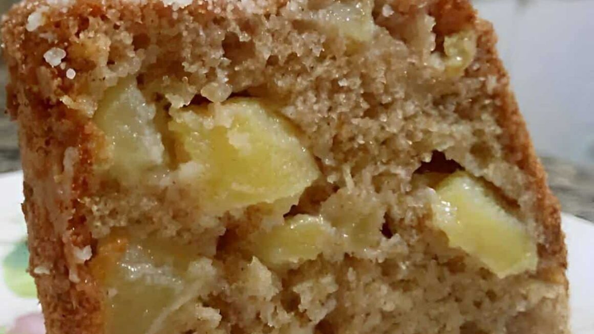 Bolo de maçã com pedaços da fruta delicioso e perfeito para servir com chá ou café