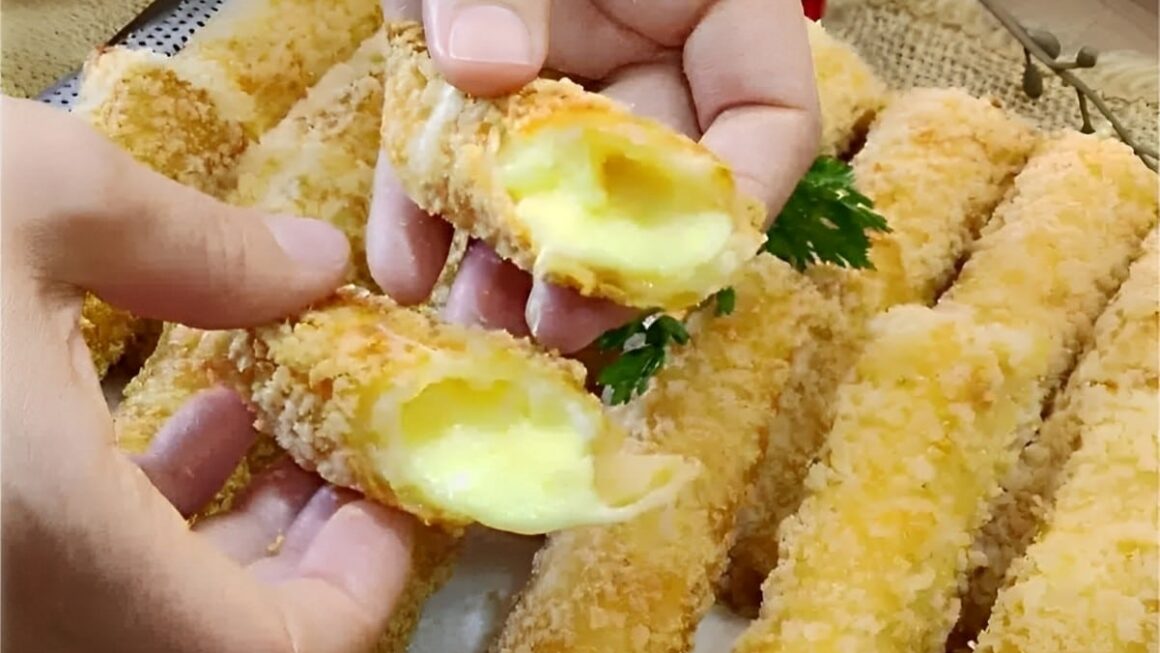 1. Comece preparando os bastões de queijo com aproximadamente a espessura de um dedo mindinho e reserve.
