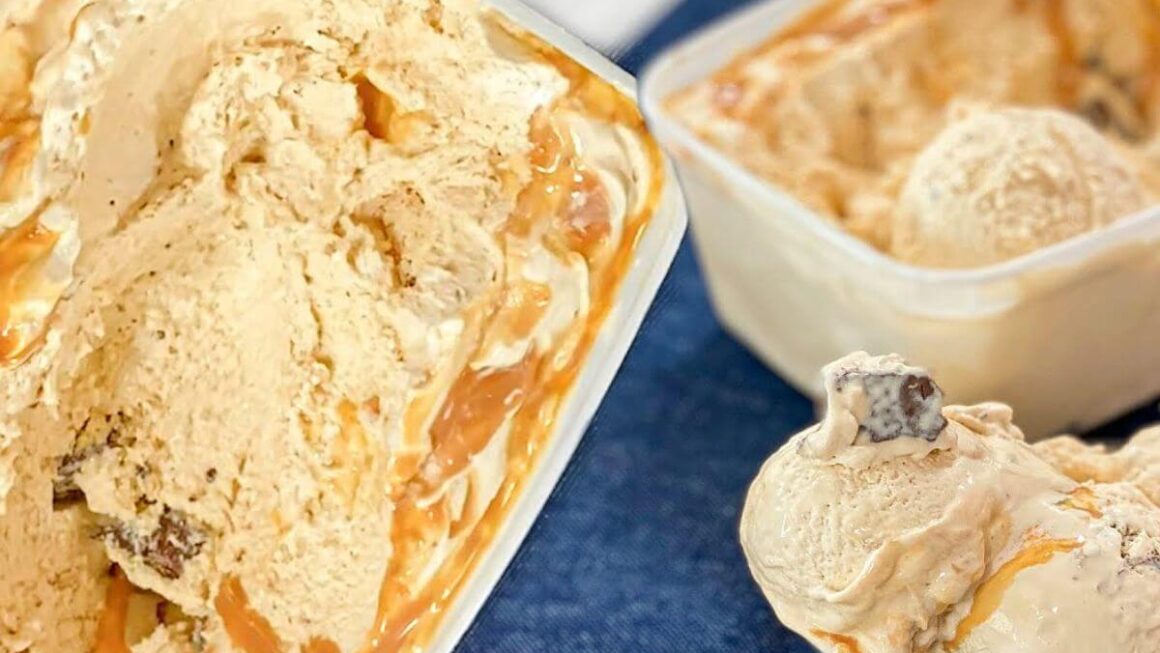 Para o sorvete caseiro, começaremos colocando a nata na batedeira e iremos bater, mas sem exagerar, para não virar manteiga. Depois, juntaremos o doce de leite e iremos mexer. Iremos picar o bis e incluir a metade na massa do sorvete, mexendo. A outra metade, vamos dispor no fundo do pote de sorvete, que utilizaremos para guardá-lo. Colocaremos a massa de sorvete nesse pote, sobre o bis picado e, por cima do sorvete, vamos adicionar mais doce de leite a gosto. Fecharemos o pote com a tampa e colocaremos no freezer por 6 horas ou até firmar. Tiraremos para servir e apreciarmos esse fantástico sorvete caseiro!