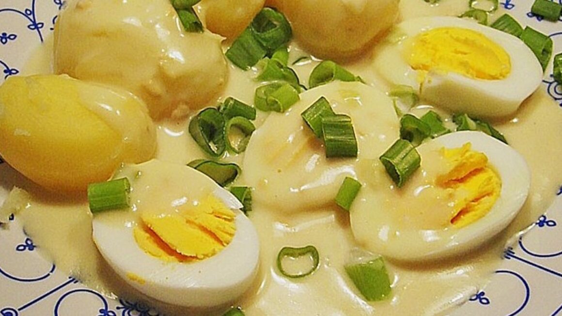 Ovos em molho de mostarda é um prato alemão clássico que é fácil de preparar e ainda sabe delicioso. Este molho cremoso com uma pitada de mostarda dá aos ovos cozidos no duro uma nota picante que se encaixa perfeitamente com batatas ou pão fresco. Aqui está a receita: