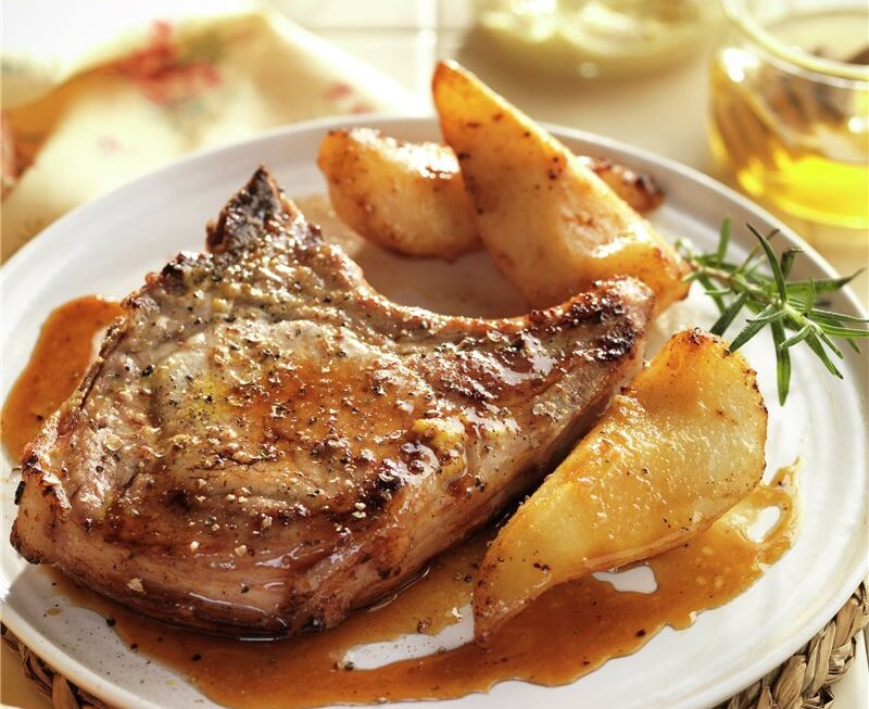 Las chuletas a la mostaza con peras caramelizadas son una combinación deliciosa de sabores salados y dulces. Aquí tienes una receta para preparar este plato: