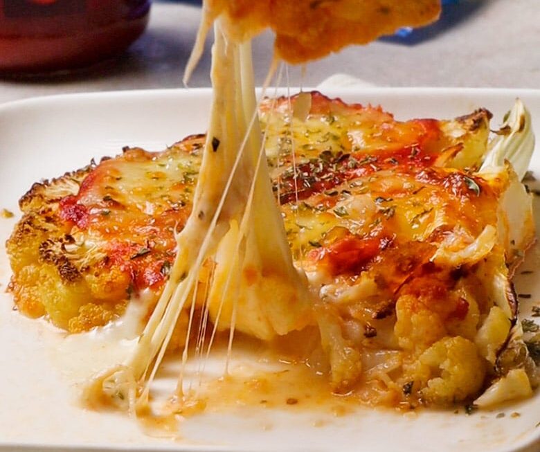 Esta receta de coliflor pizza Margarita es rica, fácil y divertida, una forma diferente de disfrutar de esta reina de las verduras, y perfecta para peques.