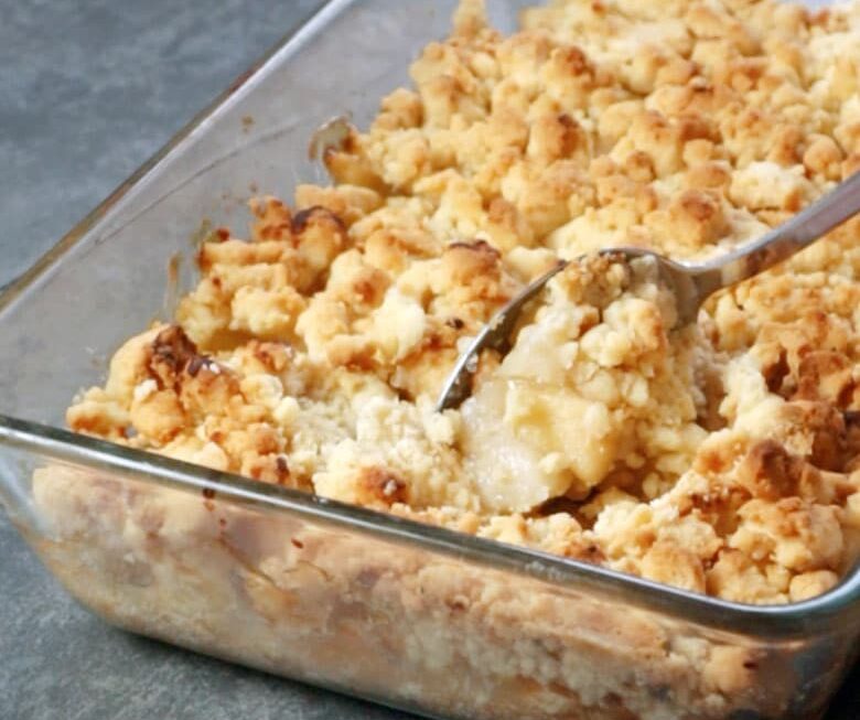 - Servimos el crumble de manzana caliente o templado.