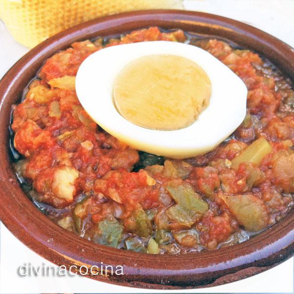- Ya sólo hay que dejar que el guiso espese y reduzca al fuego hasta que los tomates se frían y se concentren. Después servimos la fritada caliente, acompañando unos huevos duros, fritos o a la plancha.