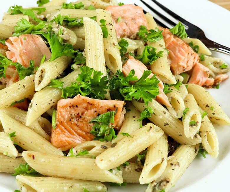 - Servimos los macarrones con salmón al momento, recién hechos.