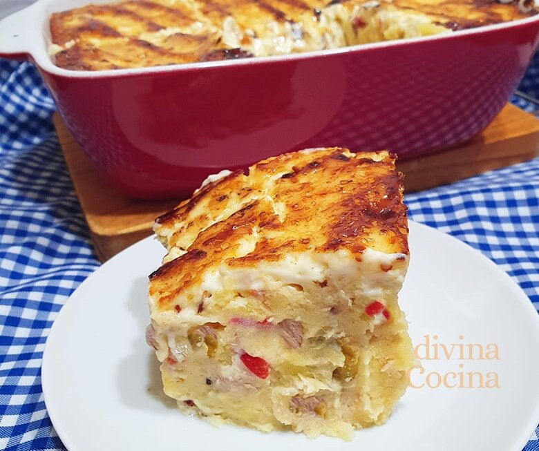 ELABORACIÓN del Pastel de patatas y atún al horno