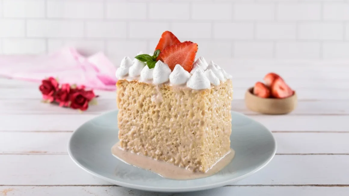 ¡Y ahí lo tienes! Un delicioso pastel de tres leches con fresas listo para disfrutar. ¡Espero que te encante!