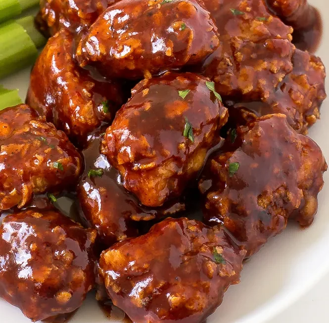 ¡Ahora tienes unos deliciosos boneless BBQ para disfrutar! Puedes acompañarlos con apio y zanahorias, y también con aderezo de queso azul o aderezo ranch.