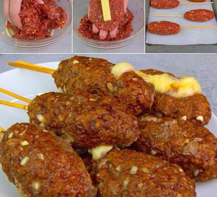 Las brochetas de res rellenas de queso son una opción culinaria irresistible que combina la jugosidad de la carne de res con la cremosidad del queso derretido. Las brochetas de res rellenas de queso ofrecen un sabor sorprendente y reconfortante que combina la robustez de la carne de res con la suavidad y el sabor del queso derretido. Cada bocado es una explosión de sabores que deleita los sentidos y deja una impresión duradera. La carne de res cocida a la parrilla o al horno se mantiene jugosa y tierna, mientras que el queso derretido en el interior de cada cubo de carne aporta una textura cremosa y suave que complementa perfectamente la carne. Esta combinación de texturas crea una experiencia gastronómica satisfactoria en cada bocado. Las brochetas de res rellenas de queso no solo son deliciosas, sino también visualmente atractivas. Las capas alternas de carne de res, queso y vegetales en un palillo de brocheta crean un aspecto colorido y apetitoso que es perfecto para servir en reuniones familiares, barbacoas o cenas especiales.