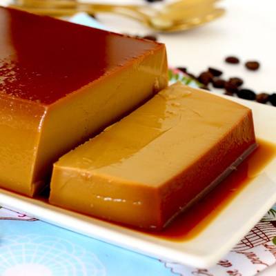 Incorpora el café fuerte enfriado y mezcla hasta obtener una mezcla homogénea. Vierte la mezcla sobre el caramelo en el molde para flan.
