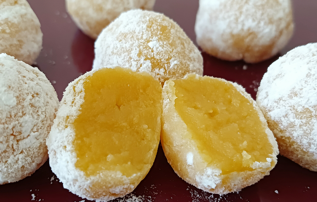 Con las manos ligeramente engrasadas, forma pequeñas porciones de la mezcla en forma de rollo o bolita.