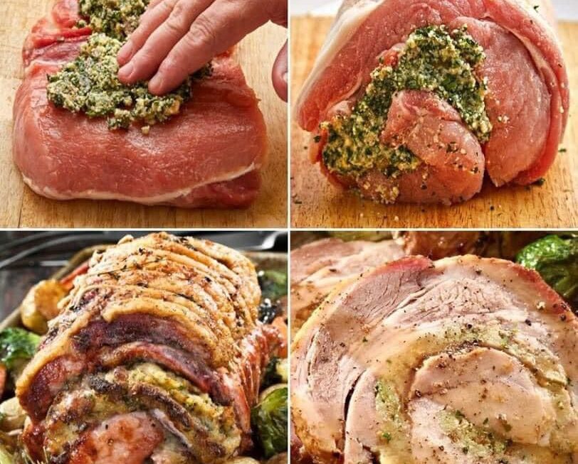 El lomo de cerdo relleno de hierbas es una exquisita opción culinaria que combina la jugosidad y ternura del cerdo con la frescura y fragancia de las hierbas aromáticas. El lomo de cerdo relleno de hierbas ofrece un sabor excepcionalmente rico y aromático. Las hierbas frescas como el tomillo, el romero y la salvia aportan una fragancia deliciosa que impregna toda la carne, creando una experiencia gastronómica memorable. Gracias al relleno de hierbas y al proceso de cocción lenta en el horno, el lomo de cerdo se mantiene jugoso y tierno. Cada bocado es una explosión de sabores y una experiencia sensorial gratificante. Este plato es perfecto para ocasiones especiales y celebraciones, ya que impresiona a los invitados con su aspecto elegante y su delicioso sabor. Es una excelente opción para una cena de Navidad, un banquete familiar o una reunión con amigos. Aquí tienes una receta sencilla y deliciosa para preparar lomo de cerdo relleno de hierbas: