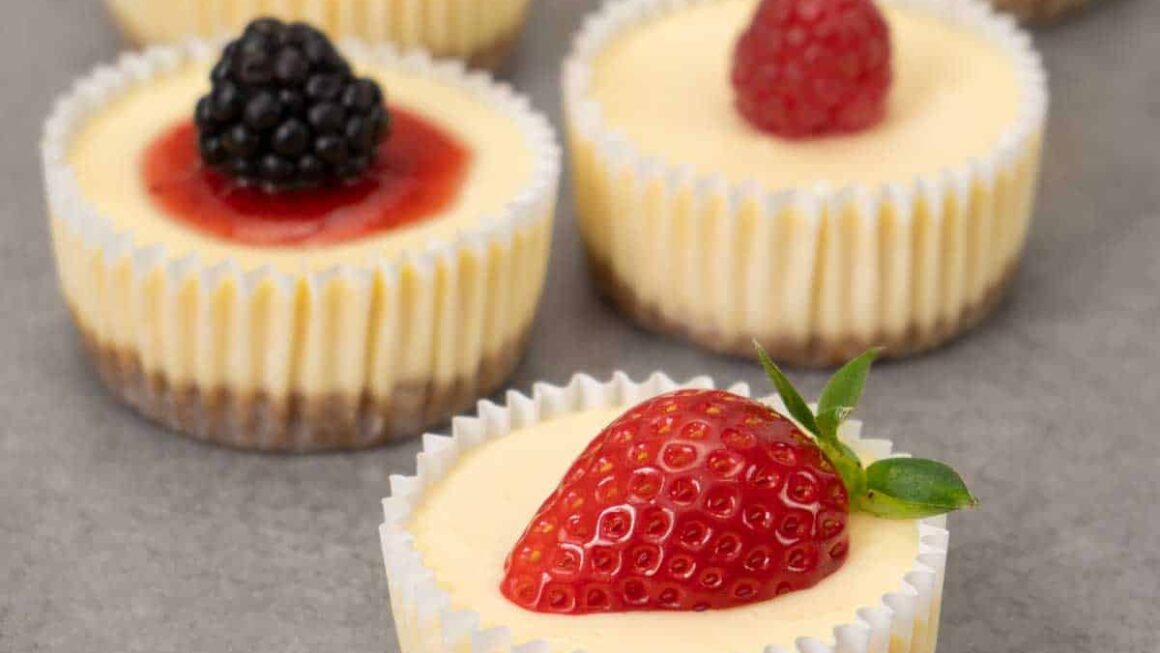 ¡Listo! Ahora tienes unos deliciosos mini cheesecakes de frutas. Sirve y disfruta de esta deliciosa combinación de cremoso queso, base crujiente y frutas frescas.