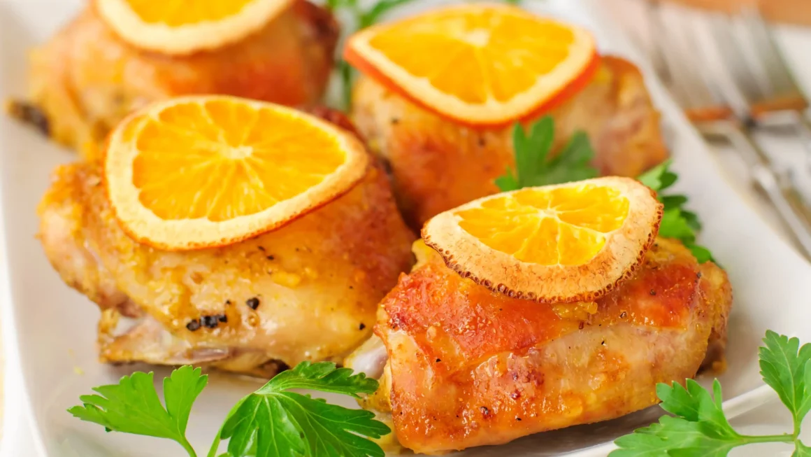 Ingredientes: 4 pechugas de pollo, deshuesadas y sin piel, Sal y pimienta al gusto, 1 taza de jugo de naranja natural (aproximadamente 4 naranjas), 1/2 taza de caldo de pollo, 1/3 taza de salsa de soja, 1/4 taza de azúcar, 2 cucharadas de vinagre de arroz, 2 cucharadas de aceite vegetal, 2 cucharaditas de jengibre fresco, rallado, 2 cucharaditas de ajo, picado finamente, 1 cucharadita de fécula de maíz disuelta en 2 cucharadas de agua (opcional, para espesar la salsa), Rodajas de naranja y hojas de cilantro para decorar (opcional).