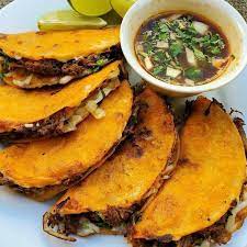 La quesabirria casera ofrece una experiencia culinaria emocionante y deliciosa, fusionando la crujiente textura de un taco dorado con el inconfundible sabor y melosidad del queso fundido. La quesabirria representa una innovación creativa en el mundo de las quesadillas y los tacos. La combinación de ingredientes y técnicas tradicionales de la birria con la preparación de quesadillas crea un platillo único que sorprende y deleita a los paladares. La mezcla de los intensos sabores de la carne de birria, sazonada con chiles y especias, con la suavidad y cremosidad del queso fundido, ofrece una explosión de sabores en cada bocado. La riqueza y complejidad de los ingredientes se complementan perfectamente. La textura crujiente de la tortilla dorada contrasta armoniosamente con la jugosidad de la carne y la untuosidad del queso. Este equilibrio de texturas hace que cada mordisco sea satisfactorio y placentero. A continuación, te comparto una receta básica para hacer quesabirria casera: