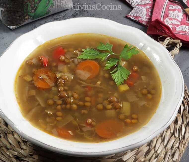 Esta receta de sopa de lentejas y verduras con especias está llena de aromas y sabor. Es un plato de cuchara sencillo pero muy especial para preparar legumbres de forma sana y original.