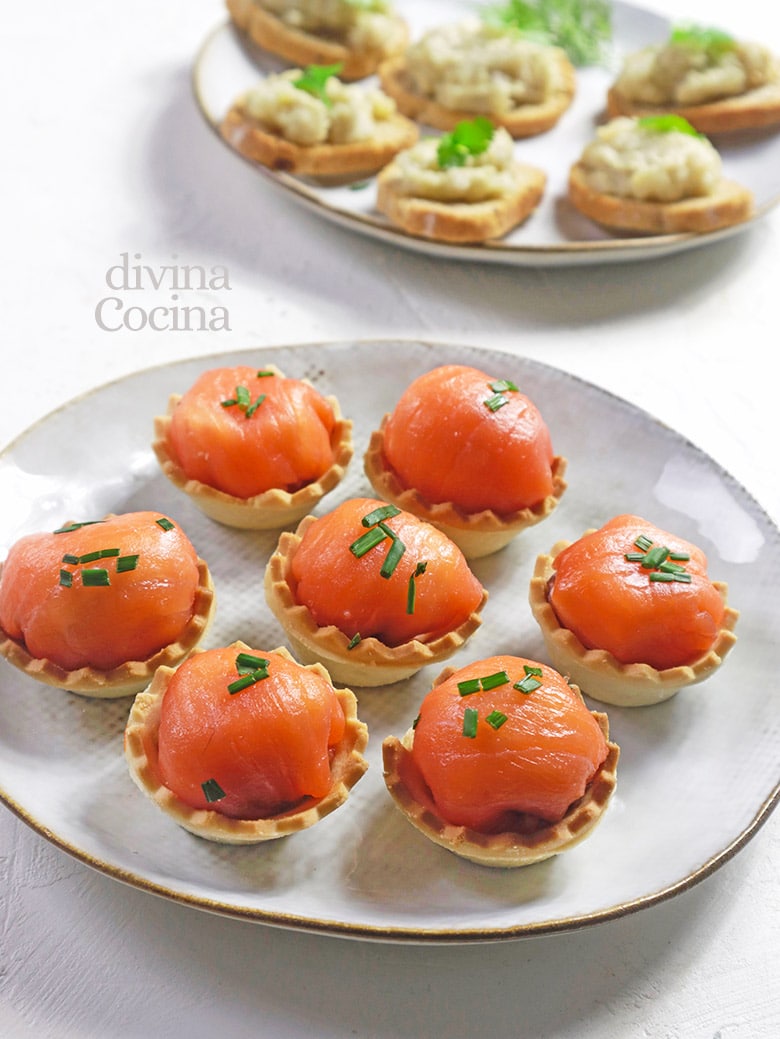 - Decoramos con cebollino o eneldo picados y reservamos en frío hasta el momento de servir. No prepares estos aperitivos fáciles de salmón con más de un par de horas de antelación porque pueden ponerse blandos.