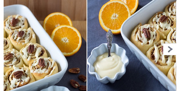 Muy deliciosos rollitos de canela con nueces y glaseado crema con sabor de naranja es maravilloso!!!