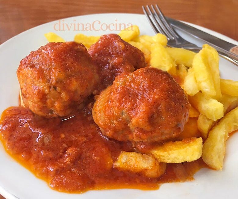 - Si lo prefieres puedes hacer estas albóndigas con tomate con carne de pollo o pavo picadas.