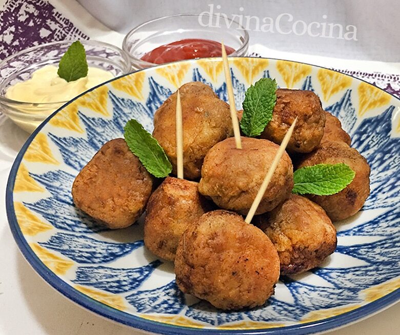 Las albóndigas morunas se sirven así, fritas y acompañadas de salsas (curry,barbacoa,salsa de tomate casera, salsa agridulce…). Si quieres las puedes ensartar en un palillo para que sean más fáciles de servir y comer. También están muy buenas servidas en frío.