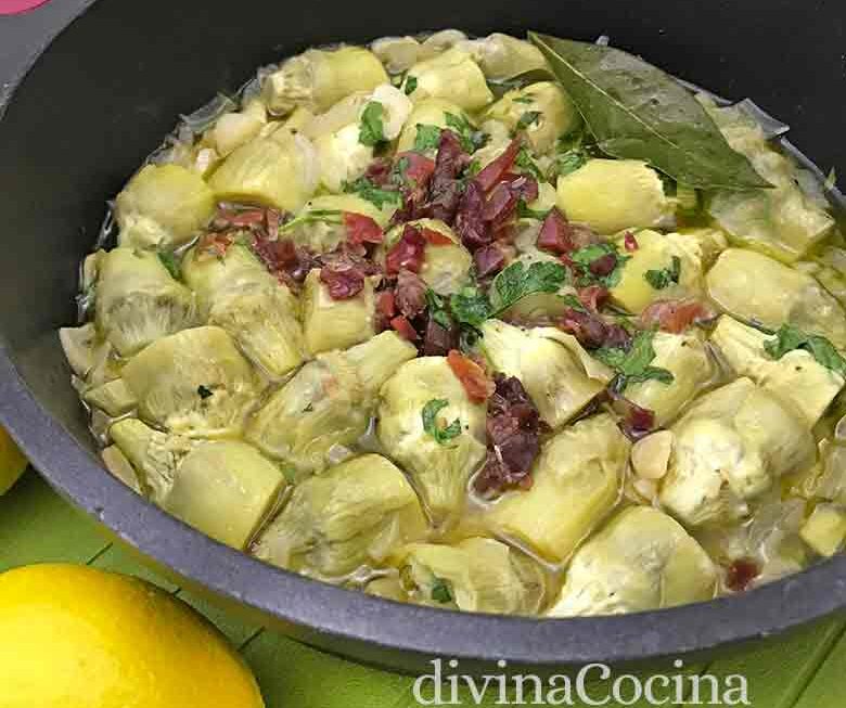 ELABORACIÓN de las alcachofas guisadas con jamón