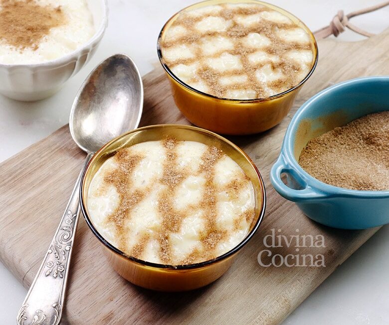• Mientras el arroz se enfría sigue absorbiendo bastante leche, así que cuando lo retires del fuego debe tener un aspecto más bien caldoso.