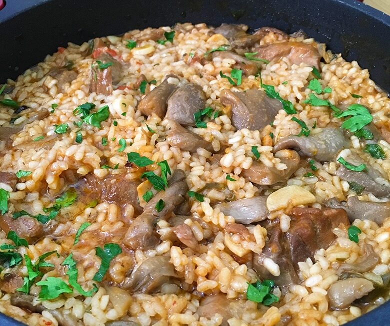 Este arroz con setas o champiñones es una delicia con las setas frescas en plena temporada, pero queda también muy bien con setas congeladas o unos sencillos champiñones Portobello.