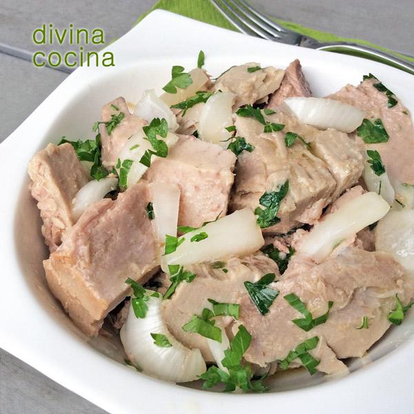• En muchos lugares de Andalucía se sirve también un plato de atún encebollado frío que se prepara guisado. Puedes ver la receta aquí.