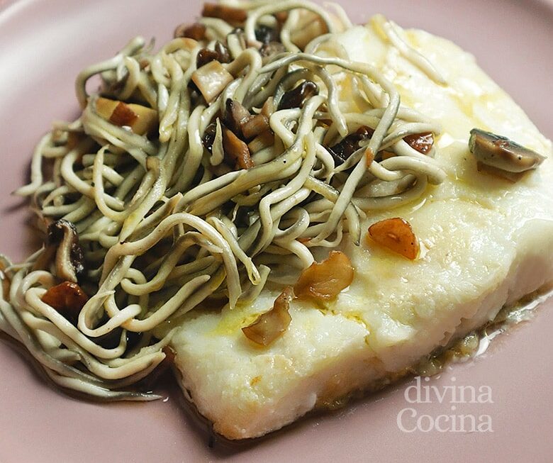 bacalao con gulas y setas paso paso