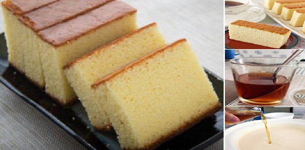 Forra el molde donde hornearás el kasutera con papel de hornear. Posteriormente, vierte en él la masa del bizcocho japonés. Por último, coge el molde 5 centímetros por encima de la superficie y déjalo caer con cuidado para eliminar las burbujas de aire y nivelar la masa.