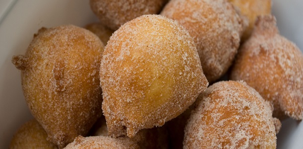 Em uma tigela, junte os ovos, a manteiga, o açúcar e o sal e misture muito bem. Acrescente alternadamente à mistura o leite, a farinha de trigo, e o fermento mexendo sempre com uma colher. Numa panela média, coloque bastante óleo e leve ao fogo alto para aquecer. Quando o óleo estiver quente, abaixe o fogo. Com duas colheres (de sobremesa), modele os bolinhos. Frite até que fiquem dourados. Com uma escumadeira, retire os bolinhos e coloque sobre um prato forrado com papel-toalha. Num prato fundo, coloque açúcar e canela em pó e misture bem. Passe os bolinhos por essa mistura até envolvê-los completamente. Sirva quente.