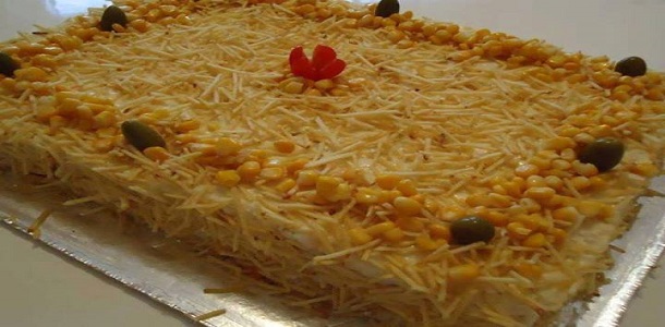 Coloque o milho, as azeitonas, o champignon e o creme de leite e 1/2 pote de maionese
