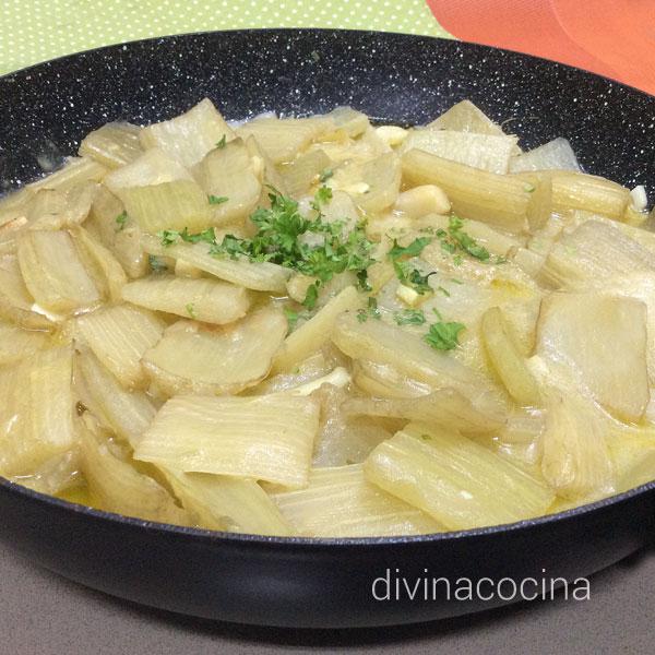 Esta receta de cardo guisado es la que preparaba la abuela María. Es sencilla y sabrosa, sin complicaciones, y el secreto de su éxito depende de la calidad del cardo.