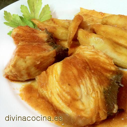 - Servimos el pescado caliente acompañado con unas patatas y cubierto con la salsa.