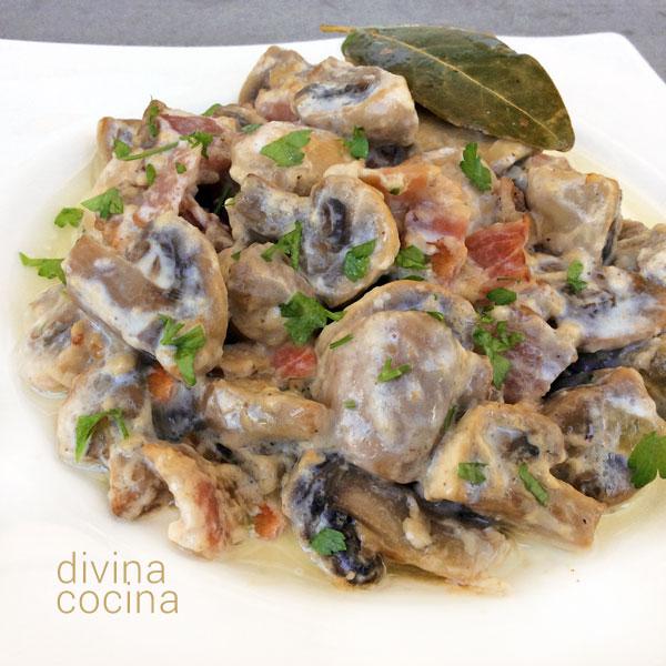 Esta receta de champiñones a la crema se puede preparar con cualquier variedad de champiñones (me encantan los Portobello) y también con setas silvestres.