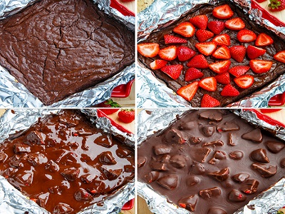 - Espolvorea las fresas encima de los brownies.