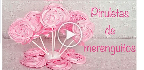 Hoy os enseño como hacer unas bonitas piruletas de merenguitos o suspiros ideales para poner en una mesa dulce, un cumpleaños o para decorar una tarta.