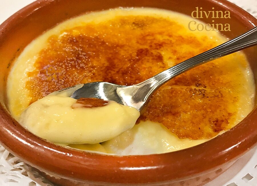 - Una vez que la crema catalana esté fría y cuando vayamos a servir espolvoreamos generosamente azúcar por la superficie y la quemamos con un soplete o un quemador. Si no tienes quemador ni soplete mira estos Consejos para quemar azúcar sin soplete.