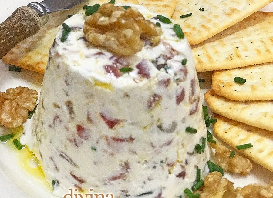 - Con tomate seco y anchoas: Mezclamos el queso crema con tomates secos muy picaditos y unas anchoas muy picadas también. No hace fañya añadir sal ni otras especias.