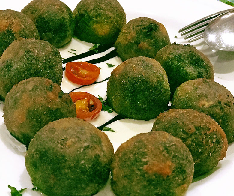 - Formamos las croquetas, las pasamos por harina, huevo batido y pan rallado y las freímos en aceite caliente hasta que estén doraditas. Servimos las croquetas de espinacas bien calentitas con una reducción de vinagre balsámico o con un poquito de alioli (ver receta).